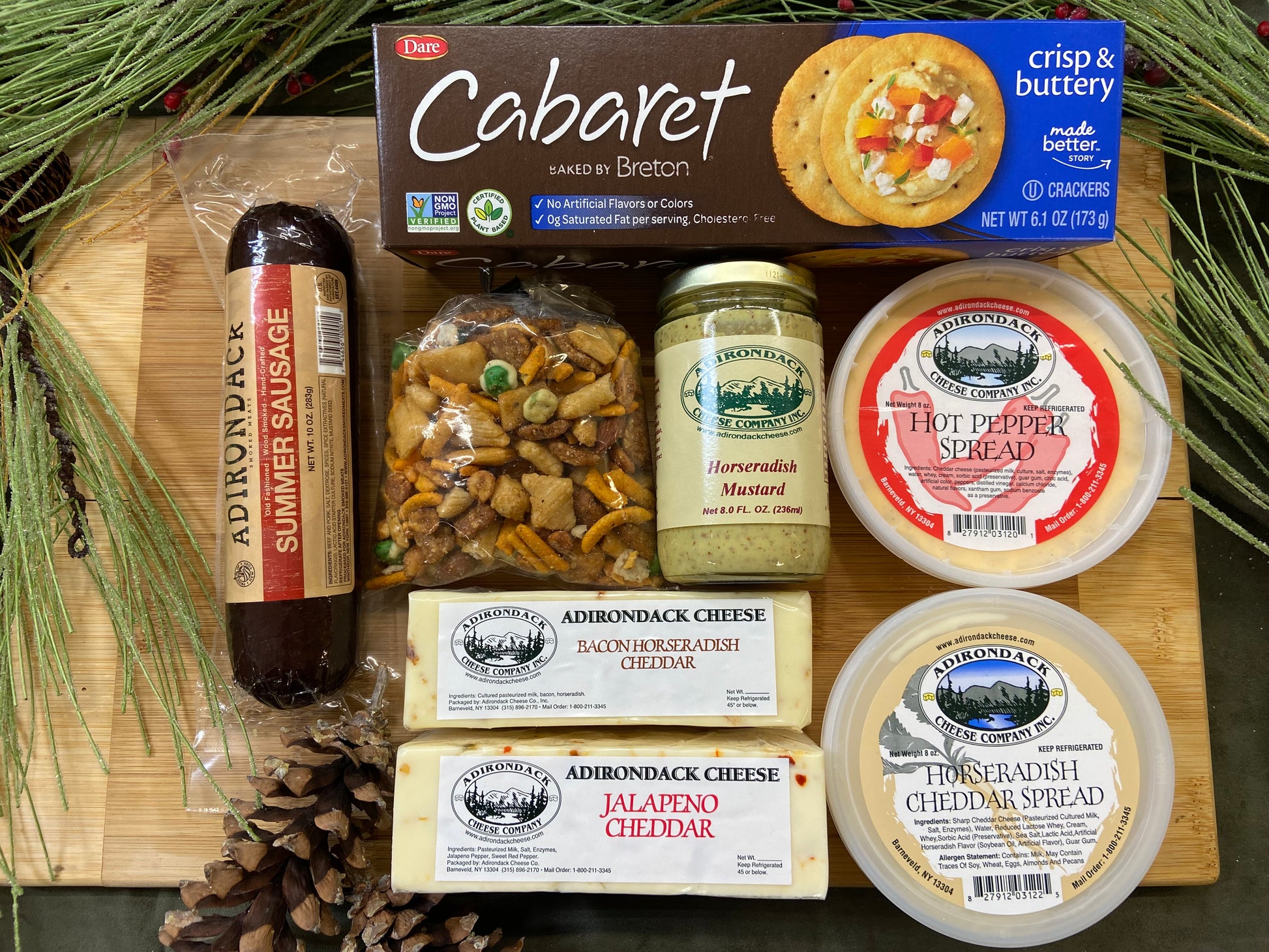 It doesn't need to be chilly outside to enjoy this assortment: A bar each of our Jalapeno Cheddar and Horseradish Cheddar, an 8 oz. Horseradish Spread and an 8 oz. Hot Pepper Spread, a Summer Sausage, an 8 oz. jar of Horseradish Mustard, Crackers and a bag of a favorite snack, The 19th Hole. Let this box Turn up the Heat!